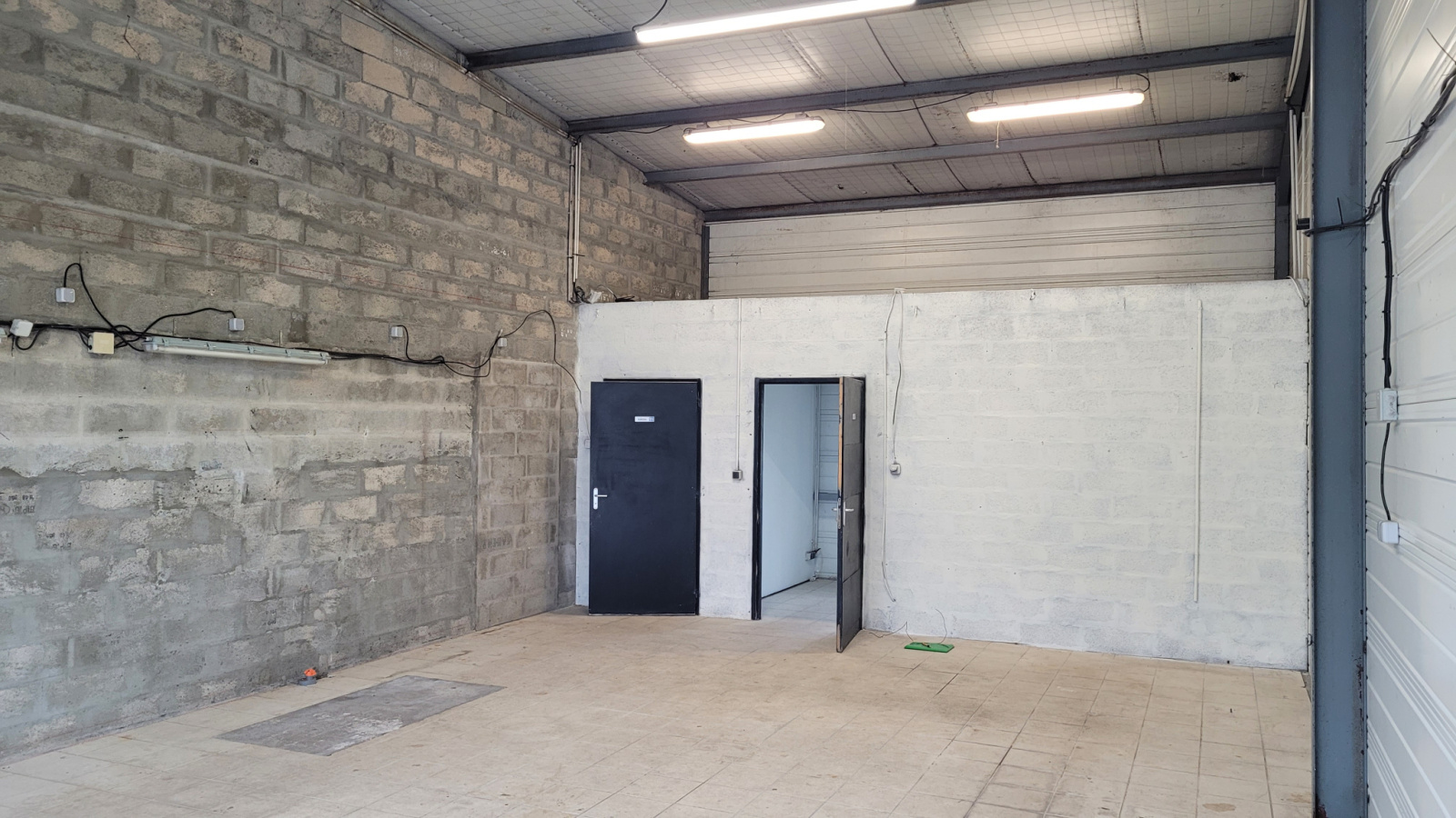 Situé dans un parc de locaux professionnels et artisanaux, Box de 70 m² loué vide comprenant un local, une mezzanine de 15 m², un bureau carrelé avec fenêtre sécurisée, un local sanitaire avec WC.
