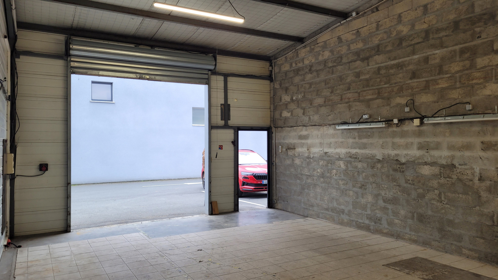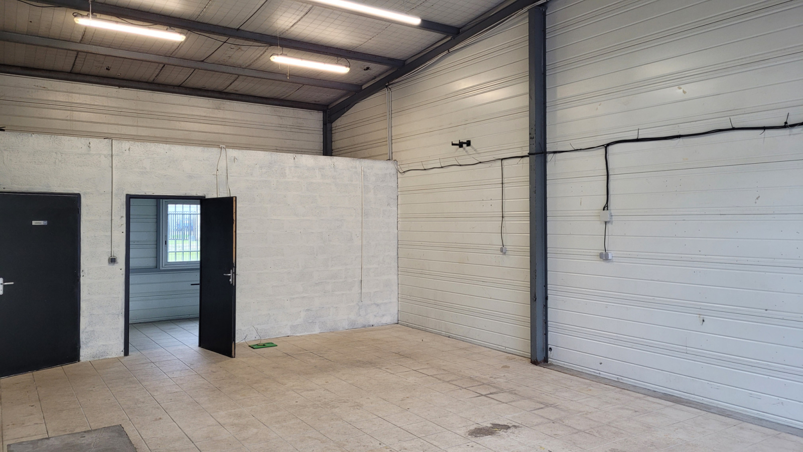 Porte rideau de 3 x 3 ouverture motorisée et une porte de service indépendante.