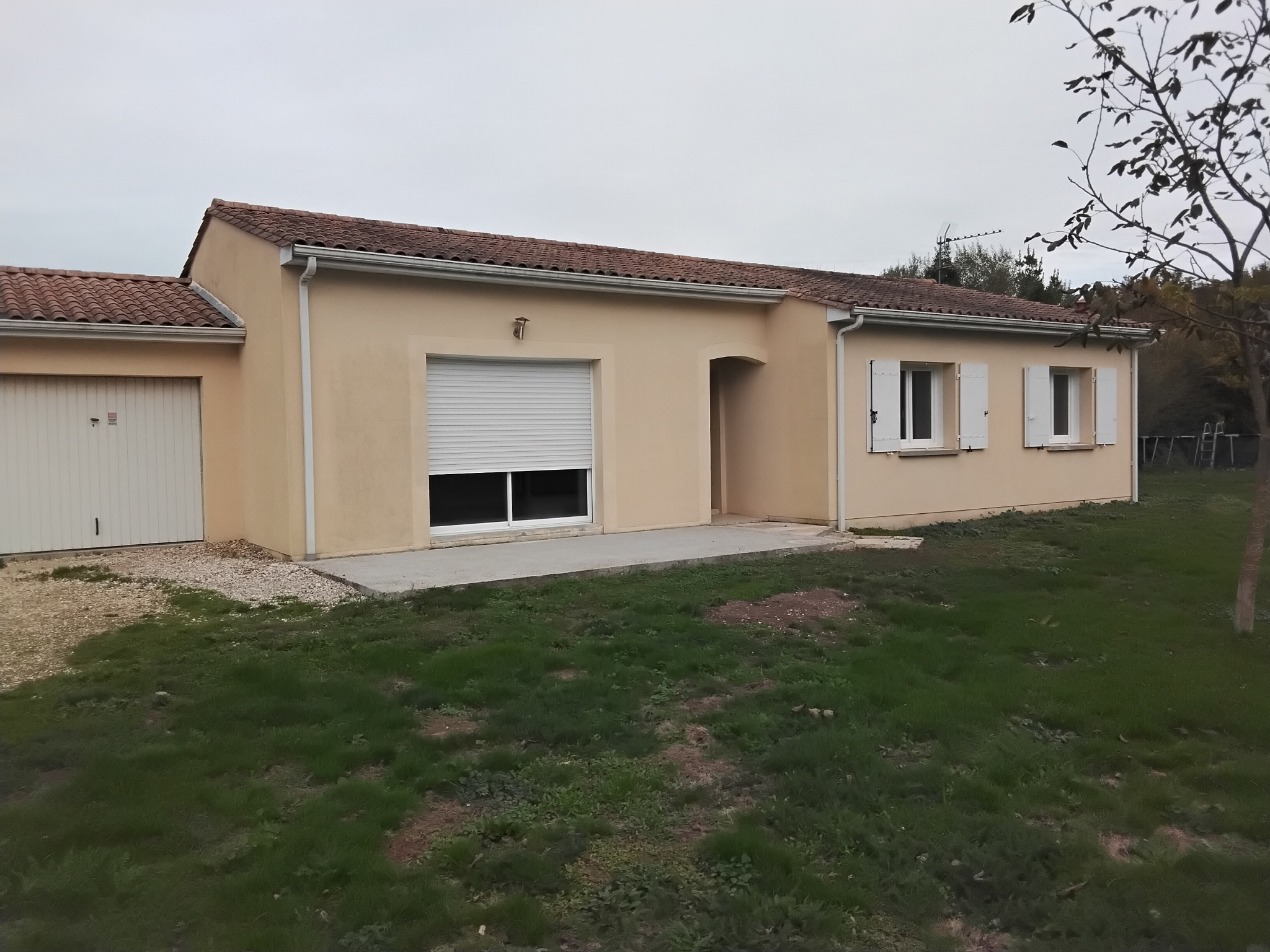 Maison individuelle de plain pied comprenant un grand salon-séjour, cuisine séparée et aménagée, cellier, 3 chambres, salle de bains avec...