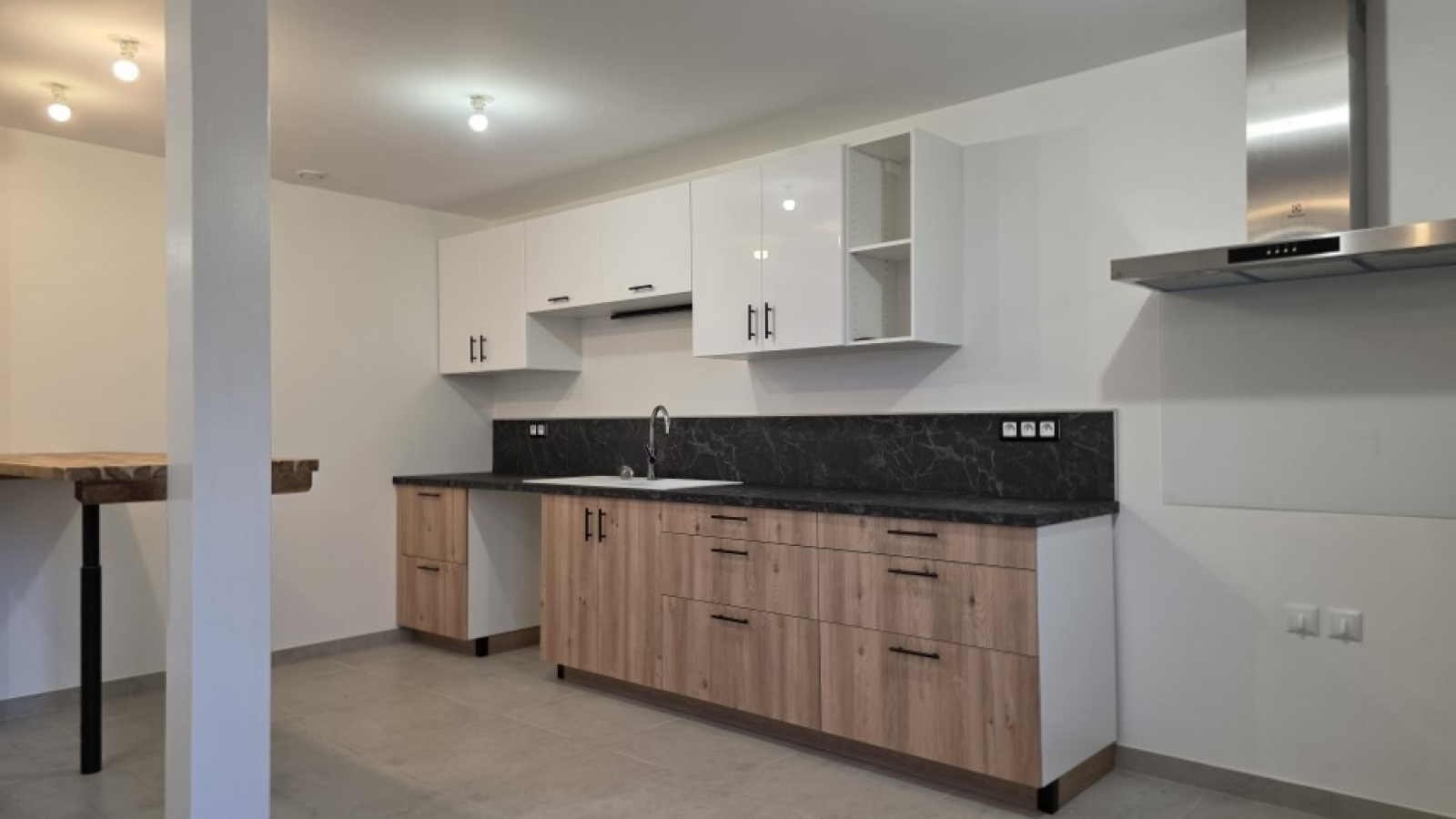 Elle offre une belle pièce de vie, une grande cuisine aménagée, une buanderie attenante, toilettes séparés.