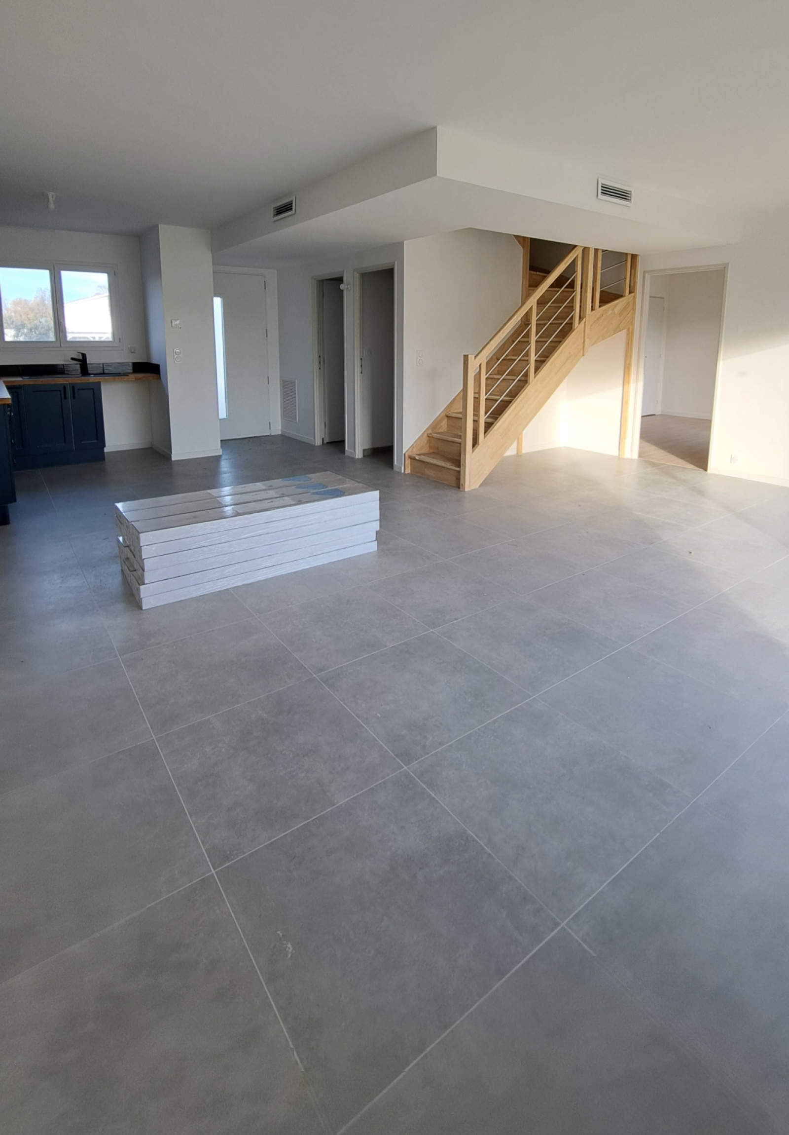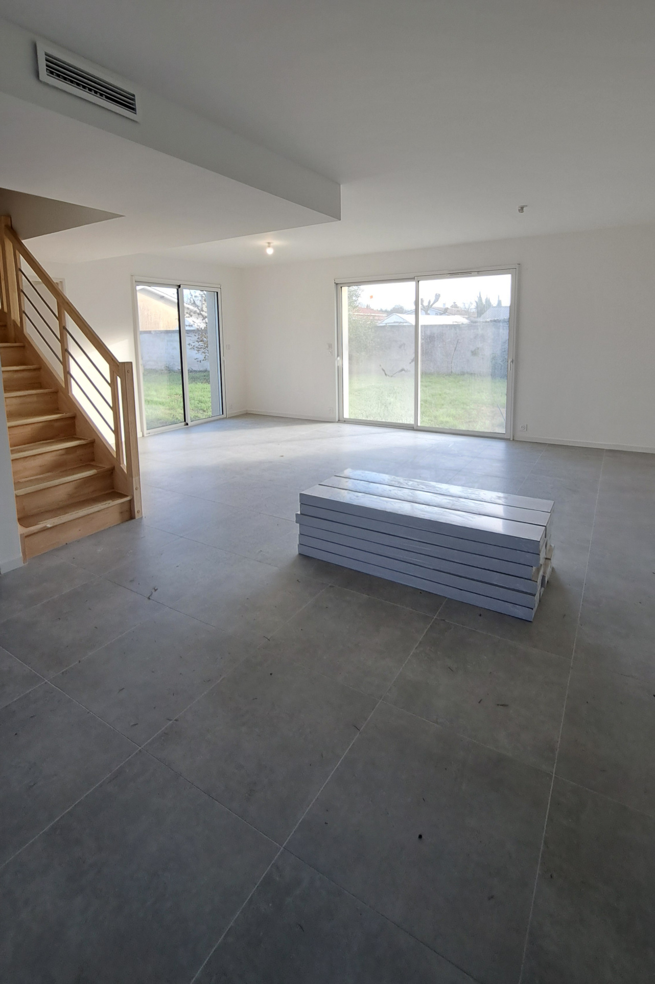 Pompe à chaleur pour un chauffage gainable réversible. Cette maison très lumineuse et bien conçue possède également sur le côté extérieur une terrasse de 23 m², environ pouvant accueillir un carport.