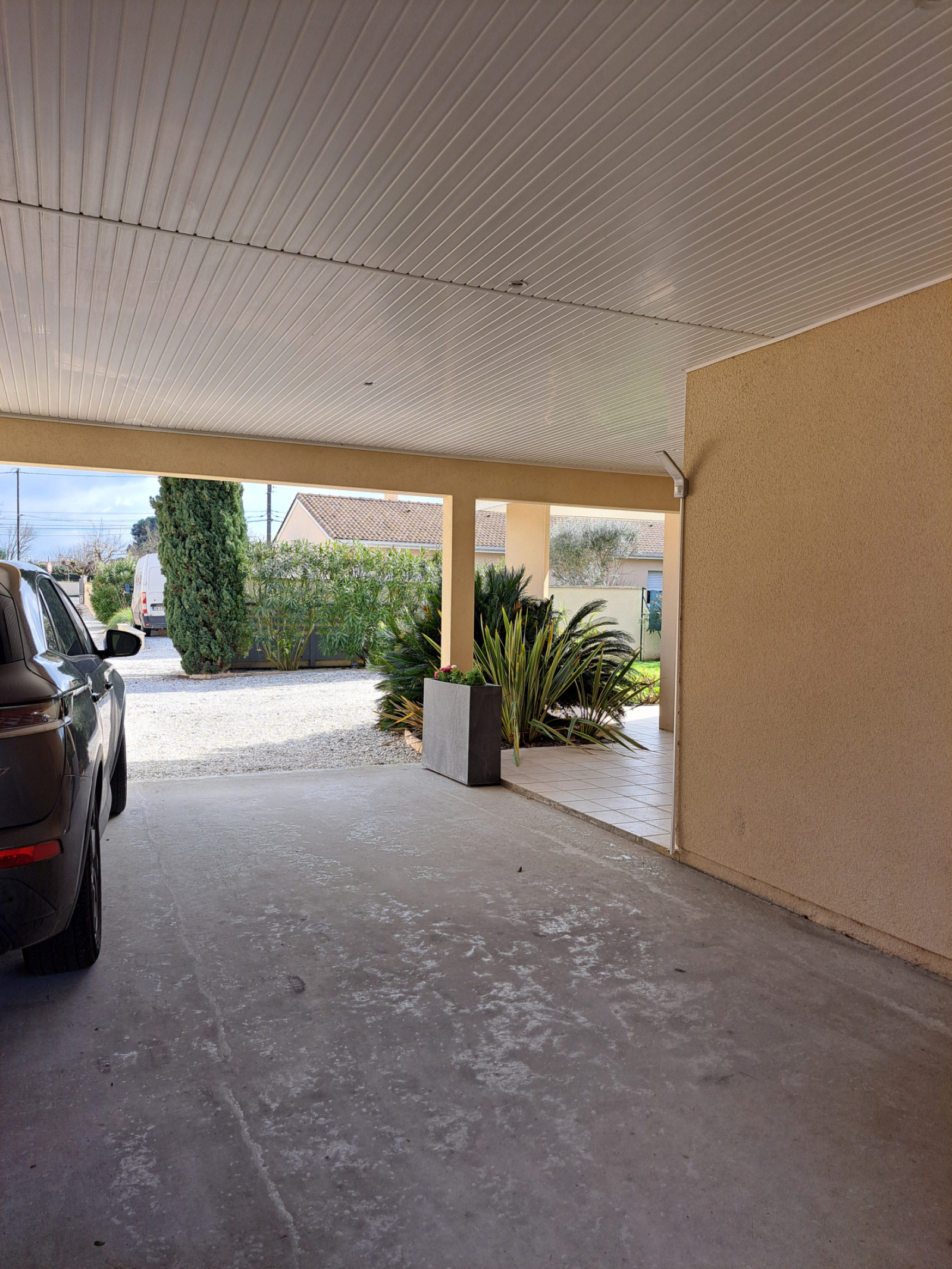 À l'extérieur, vous trouverez un abri couvert pouvant accueillir au moins deux véhicules, ainsi qu’une terrasse avec pergolas, parfaite pour se détendre ou organiser des barbecues en été. Le jardin paysagé est un véritable havre de paix pour profiter de la nature tout en restant chez soi.