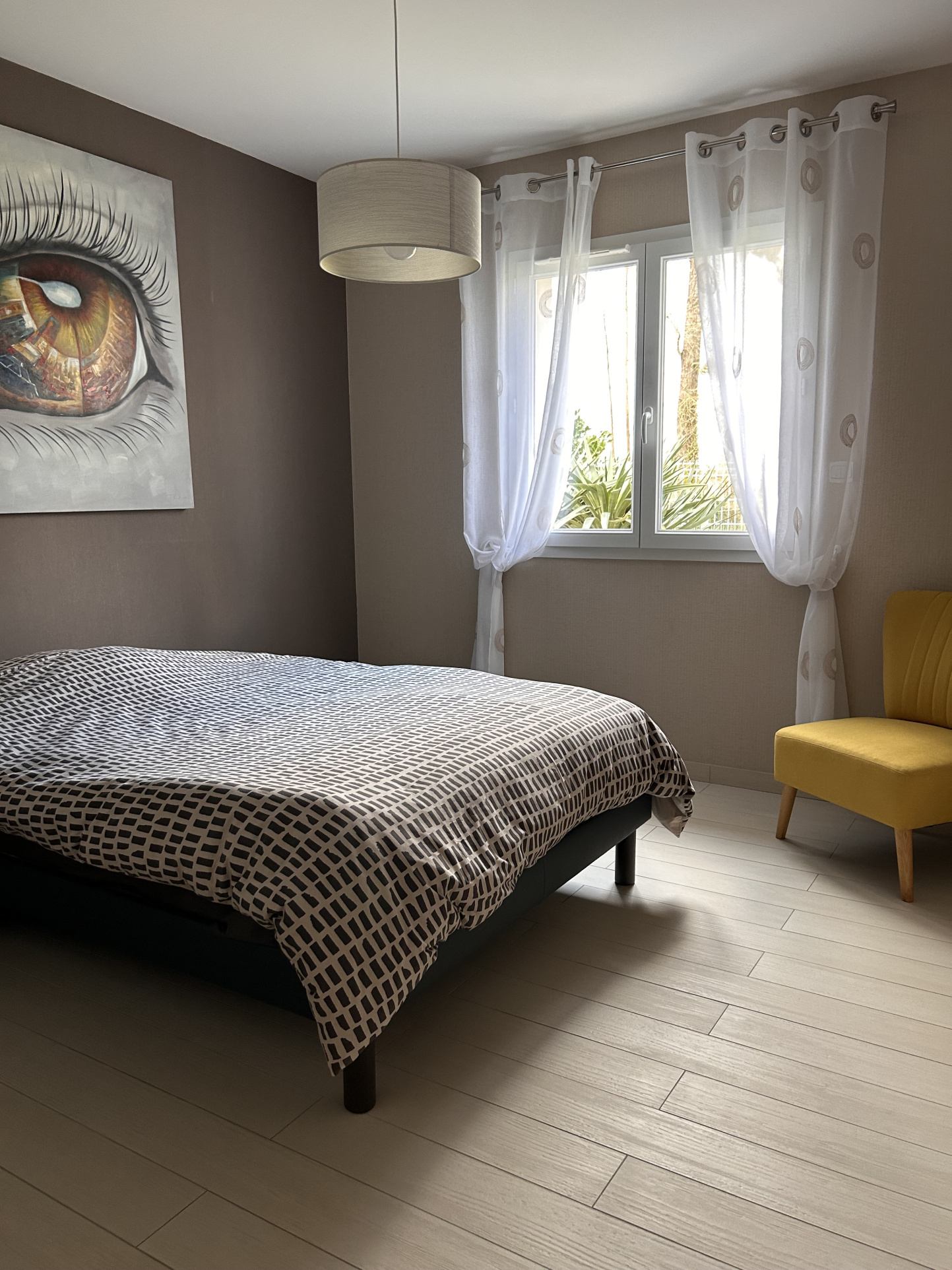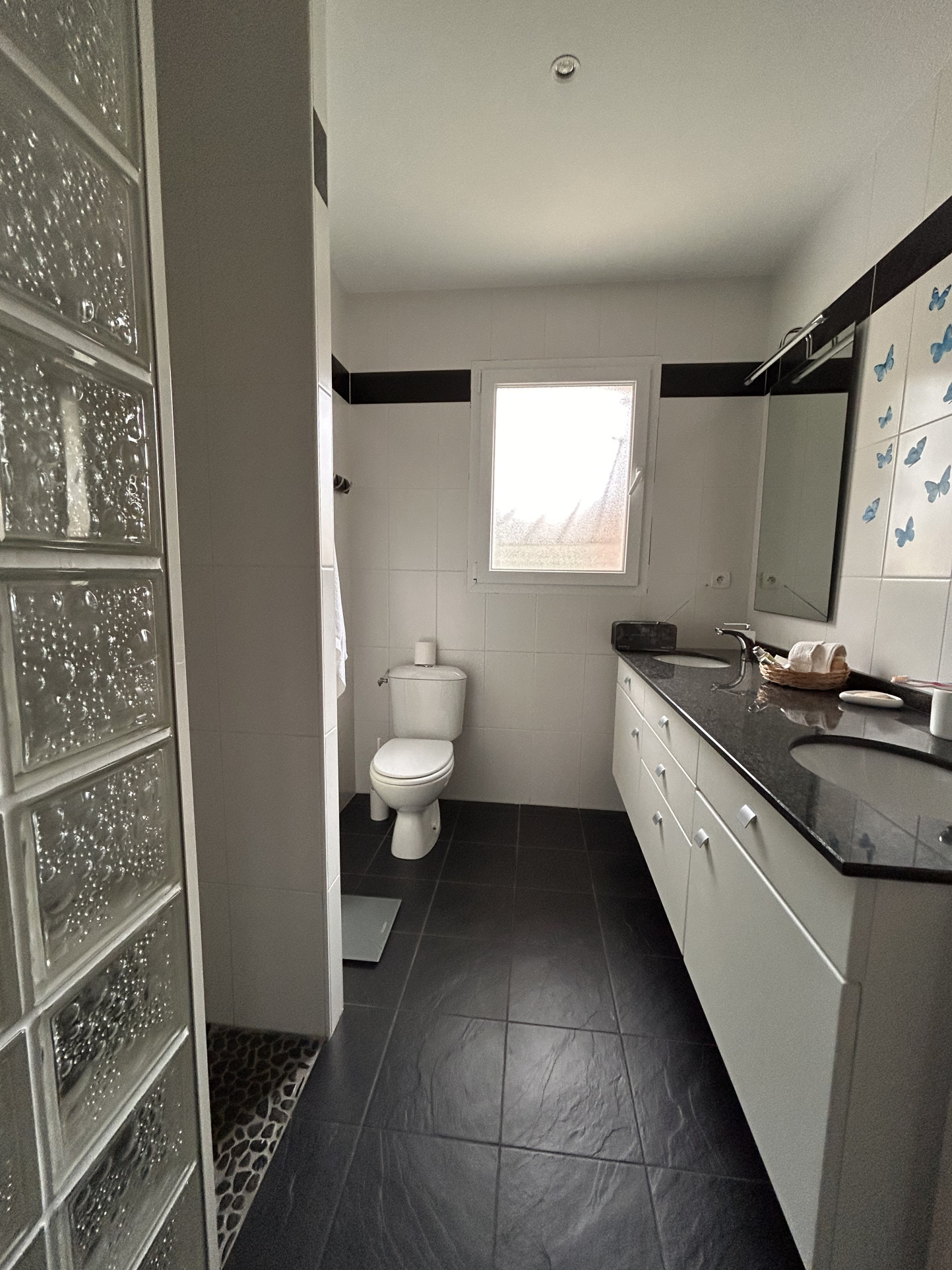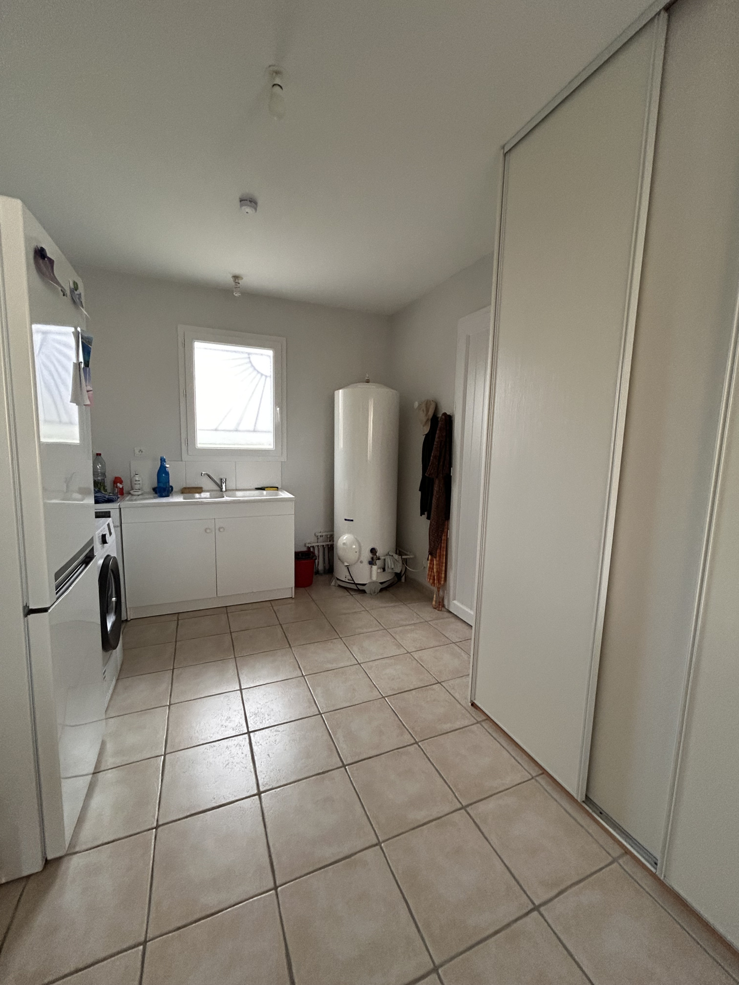 La maison dispose de trois grandes chambres, offrant un espace nuit agréable et spacieux pour chacun des membres de la famille. Vous apprécierez également la salle d'eau élégante et fonctionnelle, ainsi qu'un vaste cellier/buanderie de 12,60 m², pratique pour le rangement et l'organisation des tâches ménagères.